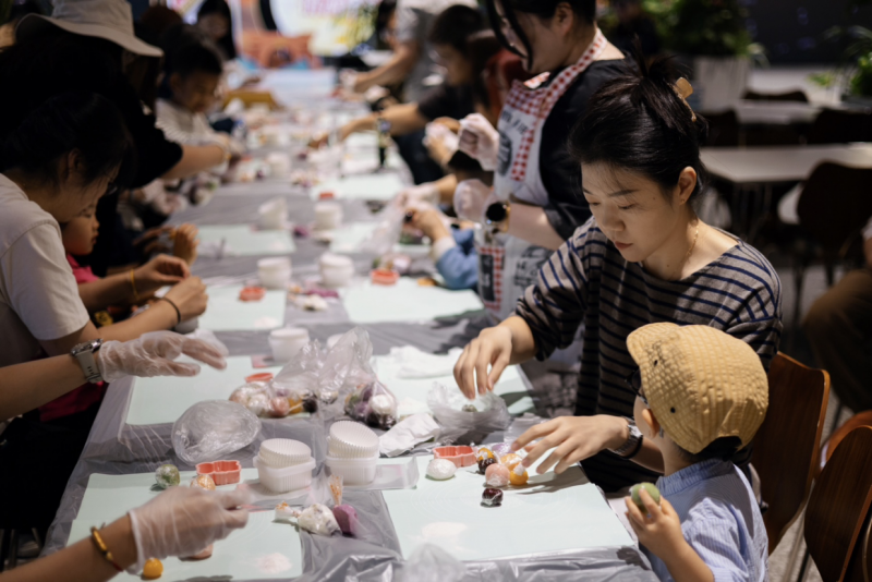 国庆假期间,DT51 B1层的手作活动区洋溢着浓厚的节日氛围。10月5日的“中秋冰皮月饼DIY”活动,特别选择在佳节前夕举办,让参与者能将亲手制作的月饼作为节日礼物与亲友分享,这一精心的日程安排,让传统节日的仪式感在创作的过程中得以自然流露。活动现场,参与者在专业导师指导下,从揉制冰皮到包馅成型,不仅学习了传统点心制作技艺,更在动手过程中深化了对中秋文化的理解。