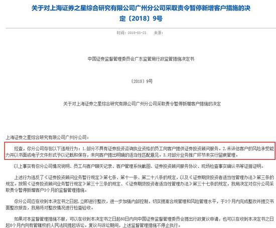整体来说,在涉及适当性管理的问题之外,部分公司存在的问题较为严重,如上海证券之星综合研究有限公司(简称“证券之星”)就有两家分公司被点名处罚。