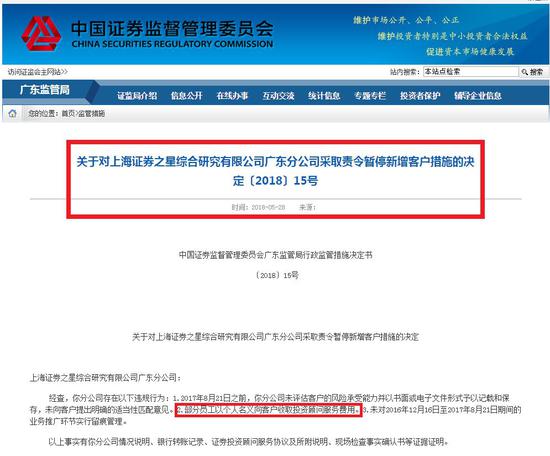 具体来看,这次证券之星被点名的两家分公司分别为广东分公司和广州分公司。其中广东分公司部分员工以个人名义向客户收取投资顾问服务费用。