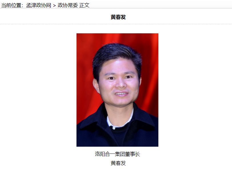 直到今年7月初,黄春发的头像依然保留在河南省孟津县政协官网的常委介绍页中。根据官方介绍,其身份为“洛阳合一集团董事长”。
