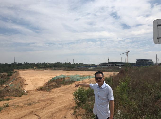 ▲2019年6月12日,童国雄的代理人向记者指出万国商汇项目所在地,仍有大片土地未开发。新京报记者 卢通 摄