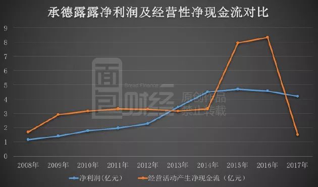 2008-2015年这8年,承德露露累计归母净利润约20.83亿元,获得的经营性净现金流合计约28.74亿元,累计现金分红约10.29亿元,分红率接近50%。
